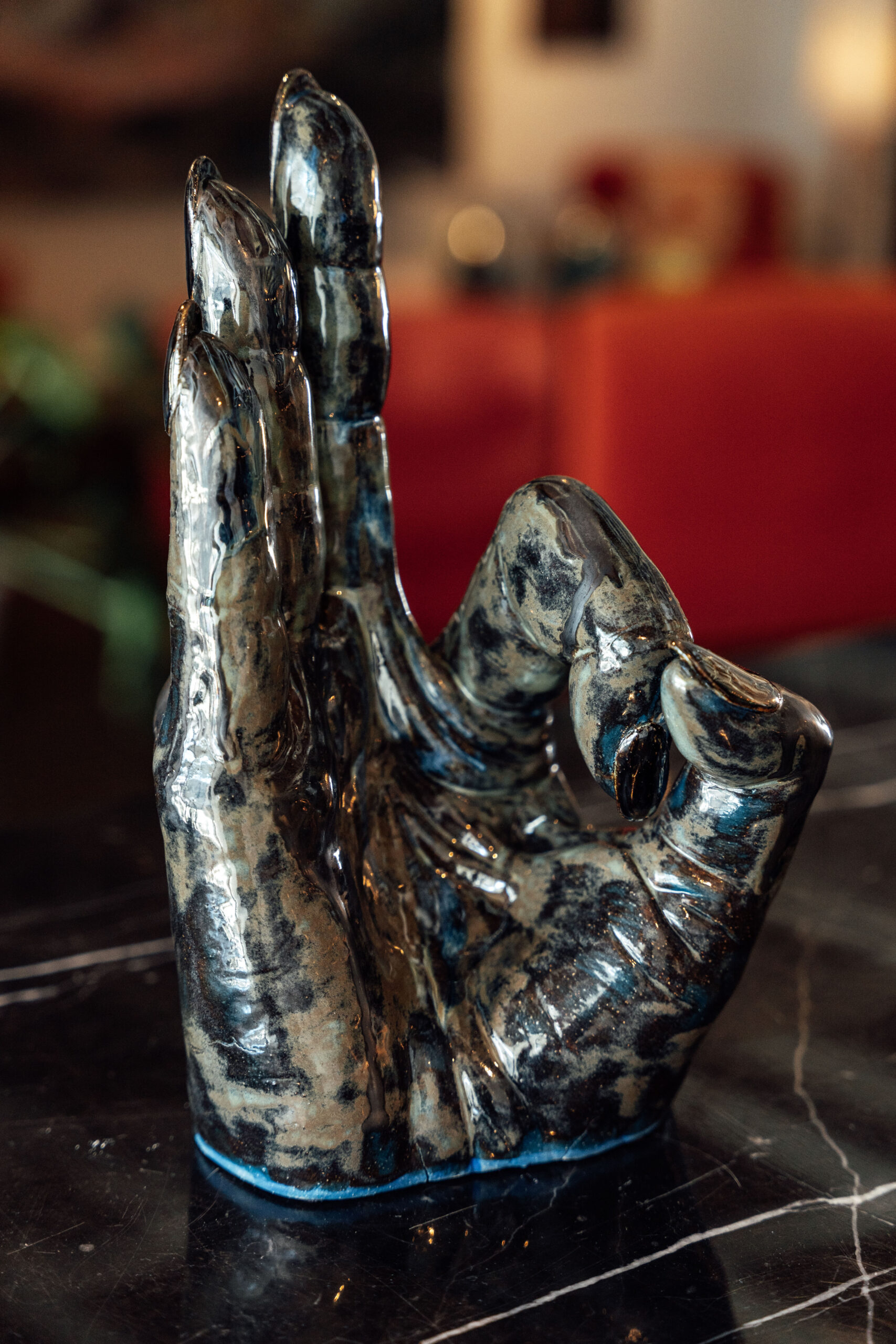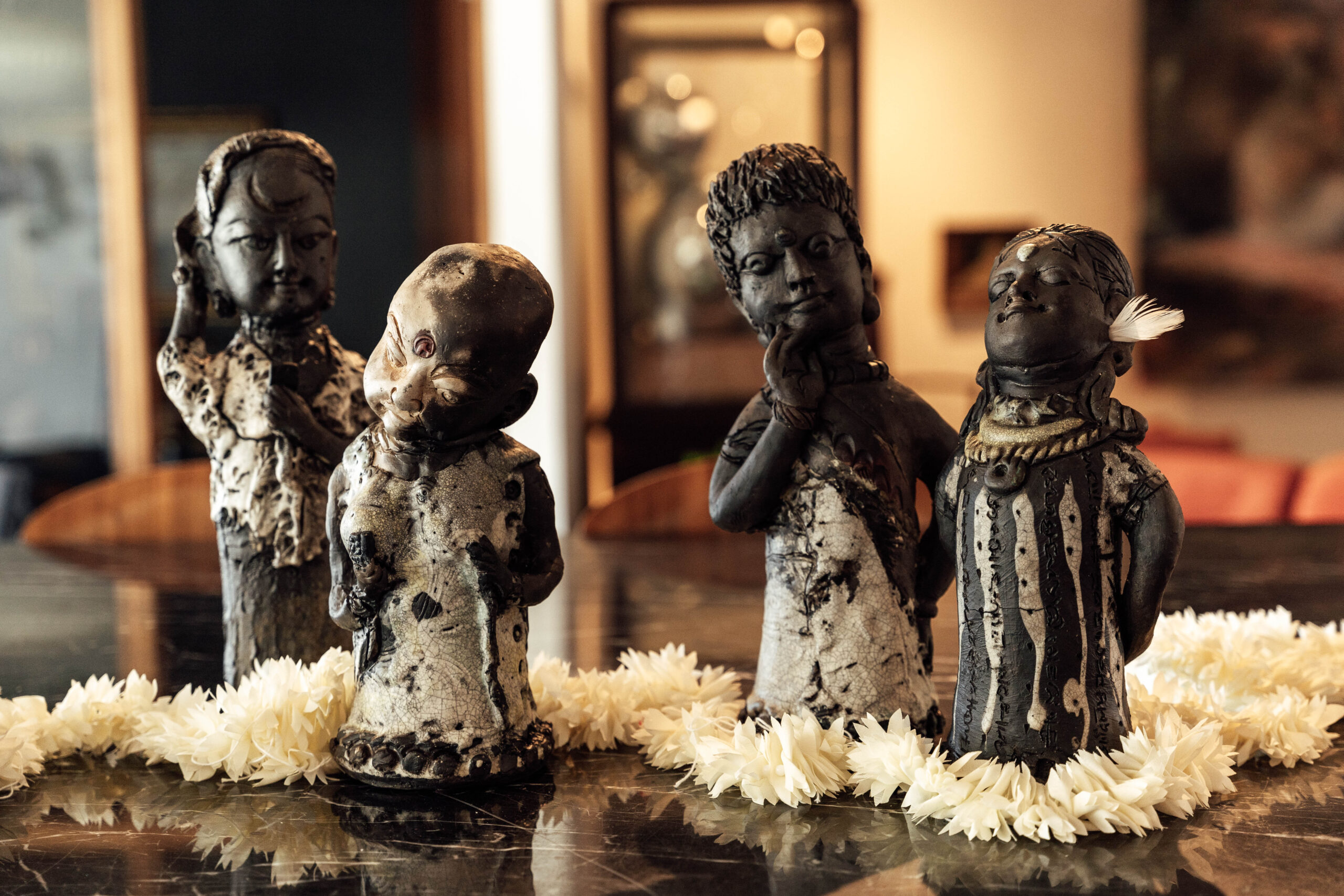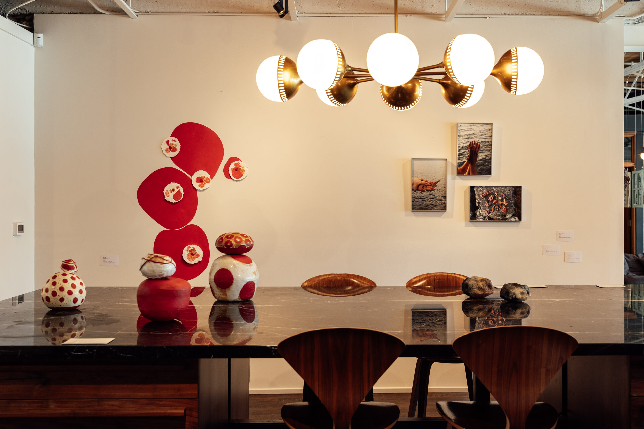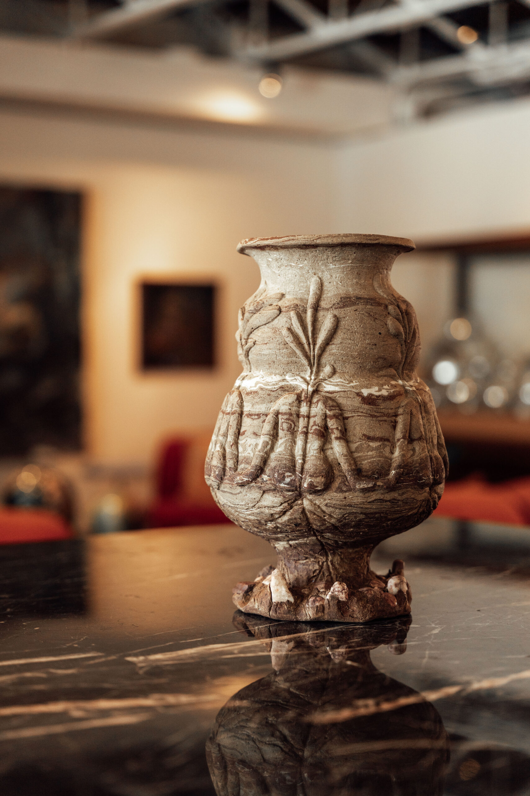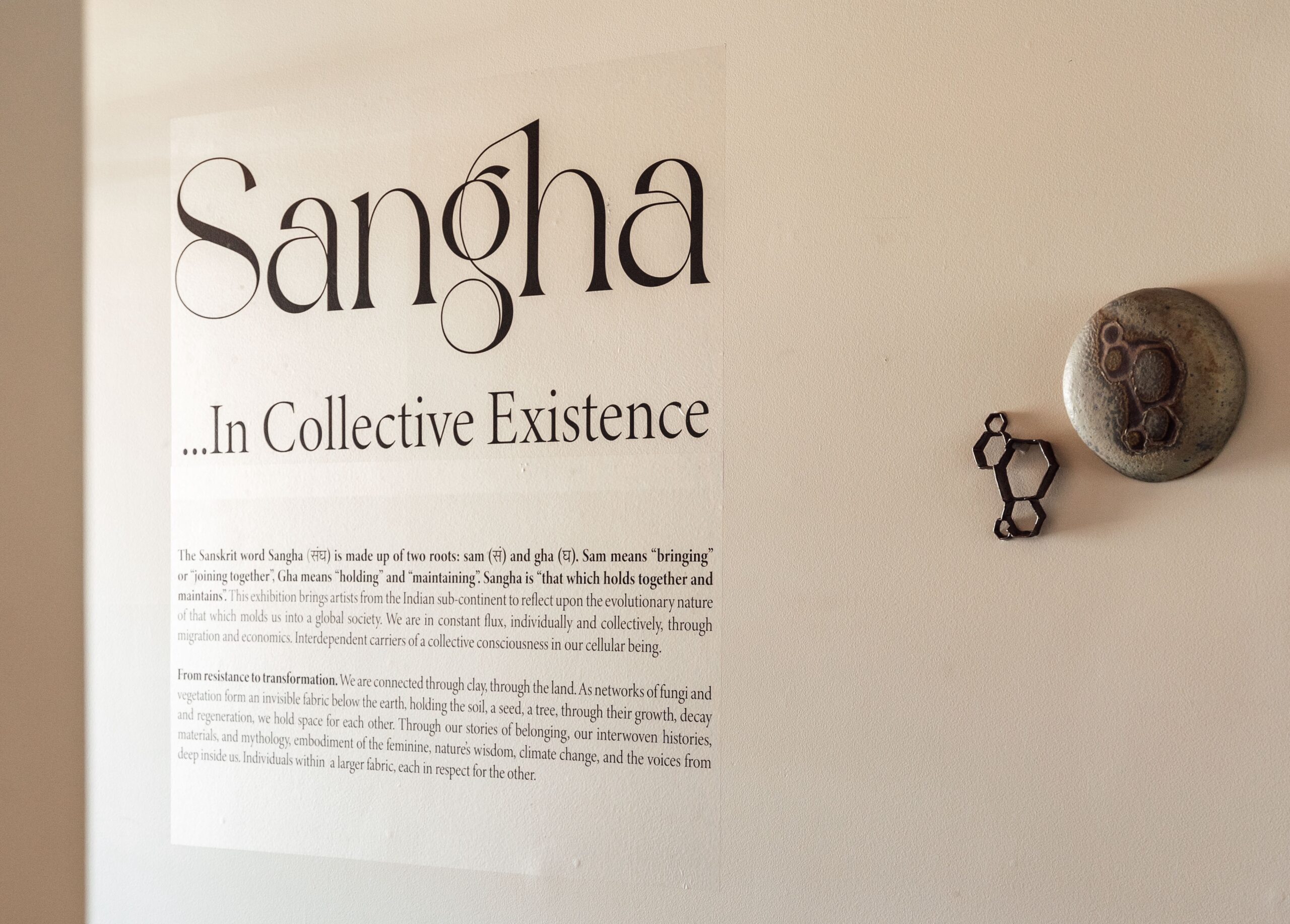Bringing together artists with roots in the Indian subcontinent,“Sangha…In Collective Existence,” reflects upon the evolutionary nature of the physical and spiritual fabric that molds and shapes us, as carriers of a culture and identity: in a constant flux, transforming individually and collectively into a global society, through economics, politics, migration, etc. ; as we continue to carry this consciousness in our cellular being. Through the Land- Just as fungi and tree roots form networks develop an intelligent interdependent cosmos of nurturing and adapting below the Earth; these structures form an invisible fabric that holds together the soil, a seed, a tree, its growth, decay and regeneration. Flowing with Nature- from Earth to the Sky: Symbolizing our individual and communal journeys. A dynamic movement, etched into our collective resilience. This exhibition explores these ‘Formations’ that connect the physical with the spiritual, the individual with the collective, and Nature, as our anchor, with its visible and invisible processes. Through Clay- Clay, as a language holds an elemental expression. Devishi and Rashi bring together artists interested in and working with this thought and experience, through their stories, expressions, collaborations and formations in clay, with interactive and immersive artworks. Sangha….In Collective Existence observes the threads of our evolution within this interconnected world.
